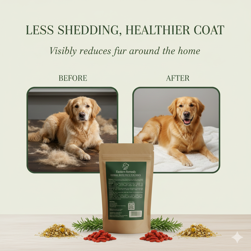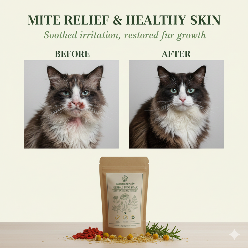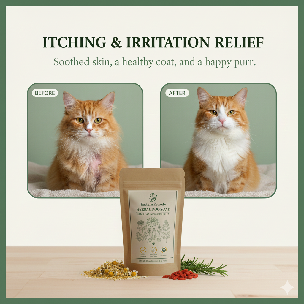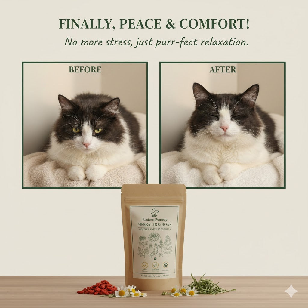 A gentle herbal formula inspired by traditional Eastern remedies, made safe for modern pets 100% Natural Herbs Chemical-Free & Fragrance-Free.