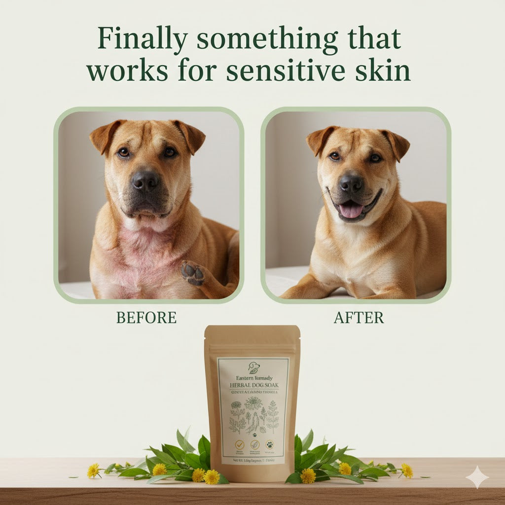 If your dog is on topical or oral veterinary medications (for example for mange, bacterial infection, or ringworm), please consult your vet first. In many cases using the herbal bath as a complementary, non-medicated soothing soak after discussing with a vet is acceptable — but do not replace prescribed treatments.